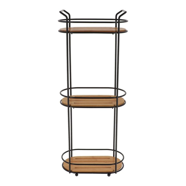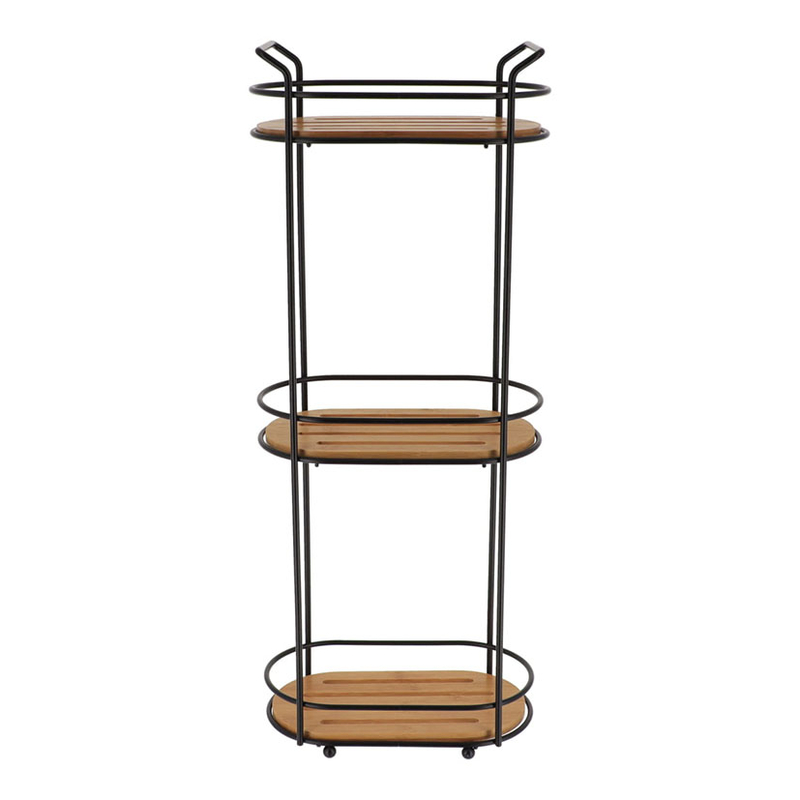 Estantería esquinera de 3 baldas de estructura metálica y estantes en bambú. Está diseñada para usarla como mueble auxiliar en tu hogar, se adaptará fácilmente a cualquier espacio o estilo de decoración. La puedes combinar con el resto de accesorios de la gama bambú que tenemos en nuestra web.