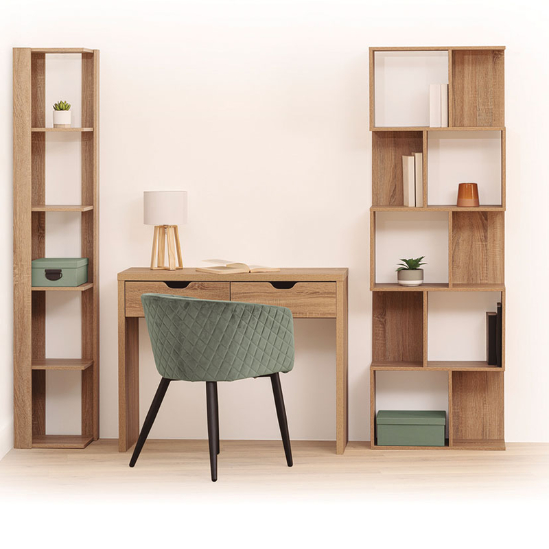 Esta estantería está fabricada en madera y dispone de 4 estantes. Las dimensiones totales son: 33x33xh.179 cm. Se integra perfectamente a cualquier decoración.