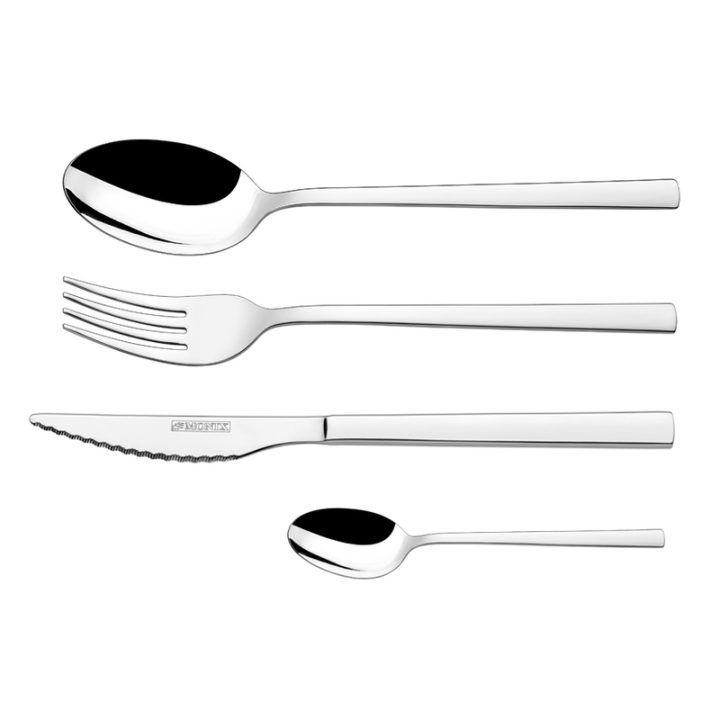 Fabricados en acero inoxidable 18/10, con un grosor de cuerpo de 2 mm y acabado pulido y brillante, estos cubiertos son aptos para lavavajillas. Presentados en una caja de 24 piezas, son ideales tanto para uso diario como para ocasiones especiales, combinando durabilidad con un diseño sofisticado para realzar cualquier mesa.