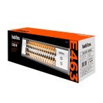 Esta estufa es de fijación mural, dispone de cabezal orientable. Es ideal para instalar en el baño y economizar sitio. Funciona mediante tirador manual (cuerda). Tiene dos potencias: 600 W con una barra y 1200 W con las dos. Viene presentada en una caja y tiene 2 años de garantía.