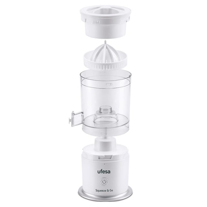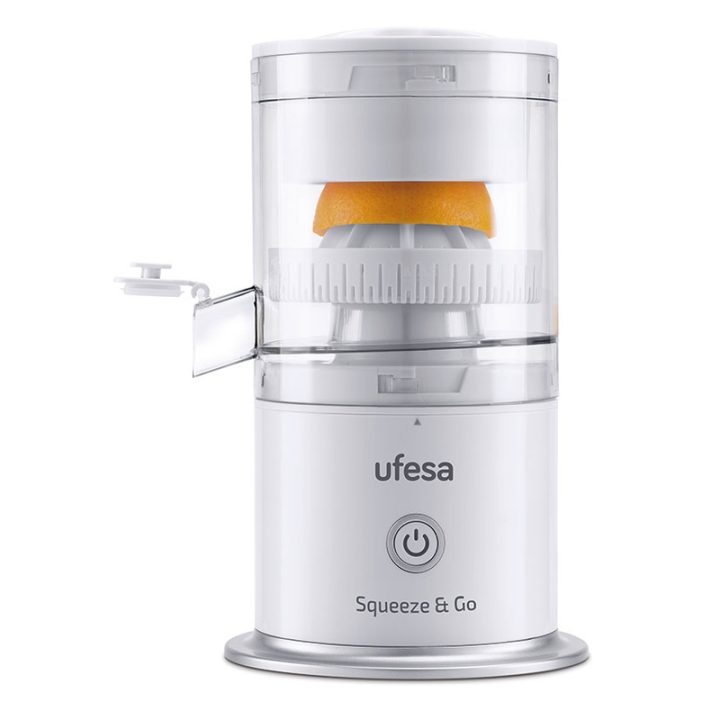 El exprimidor recargable UFESA Squeeze & Go es de vertido contínuo. Prepárate tu zumo natural de forma sencilla gracias a este utensilio. Para ponerlo en marcha únicamente deberás colocar la fruta cortada y poner la tapa, se encargará de extraer todo el jugo de la fruta automáticamente. Dispone de un sistema de extracción en espiral para obtener el máximo zumo con el mínimo esfuerzo. Incorpora una batería que se carga en tan solo 2-3 horas y la puedes utilizar hasta 30 veces con cada carga completa. Incluye cable USB Tipo-C para que lo puedas cargar en cualquier lugar. Es apto para todo tipo de frutas y tamaños.