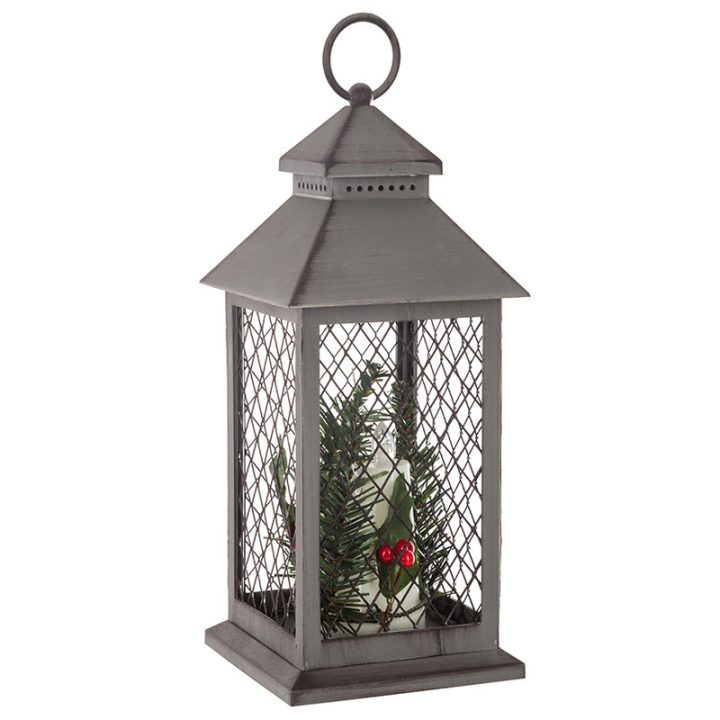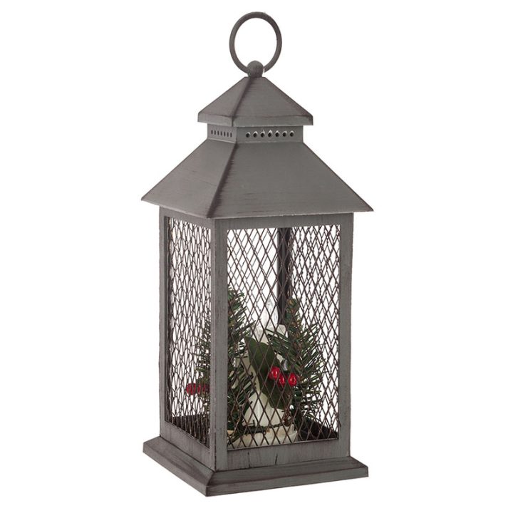 Este bonito farol está fabricado en polipropileno con una rejilla de alambre. Dispone de 3 Led e incorpora un aro en el extremo para que lo puedas colgar. Tiene unas dimensiones de 13,5×13,5xh.31 cm. Funciona con 3 pilas de tipo AAA que no vienen incluidas. Viene presentado en una caja.