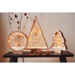 Esta figura circular está fabricada en madera, combina el estilo rústico con el cálido resplandor navideño, gracias al follaje que se situa en el centro del mismo. Dispone de 25 microLedes que emiten una luz acogedora cálida. No pasará desapercibido en tu hogar. Funciona con 2 pilas de tipo AAA que no vienen incluidas.
