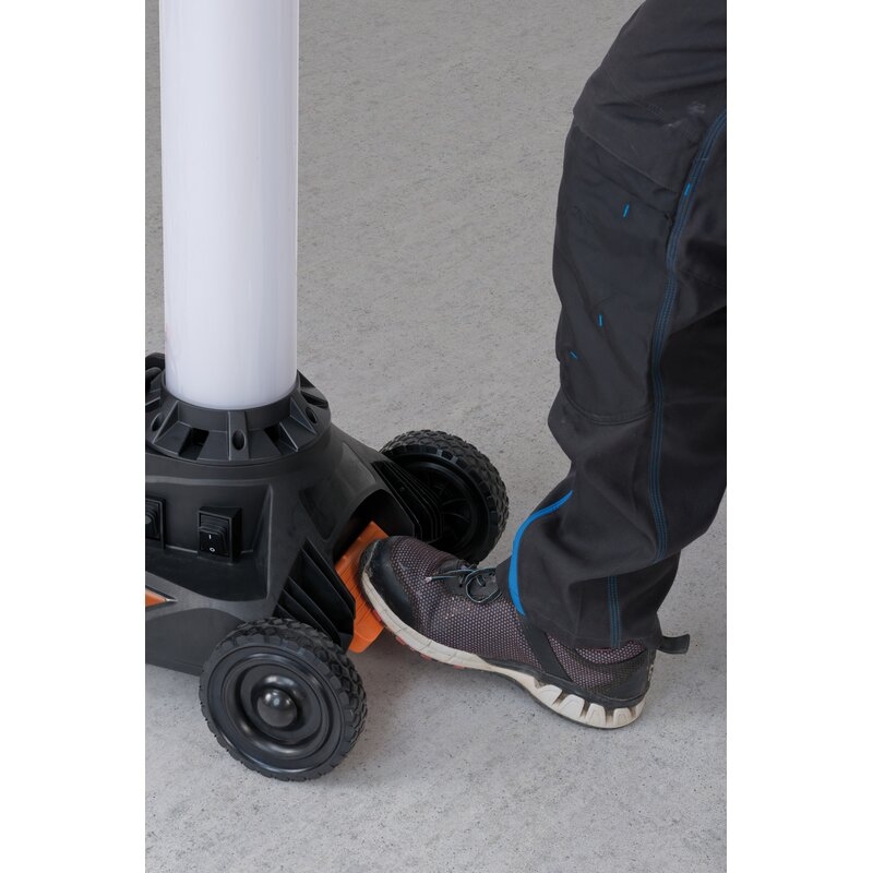· Proyector portátil todoterreno con ruedas robustas y freno.