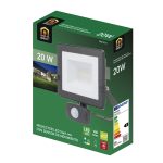 Este foco proyector de 20W de potencia emite 1880 lumen de luz día de 6500ºK. Su caracasa es de aluminio fundido a presión resistente a la corrosión. Vidrio templado. Incorpora un LED no recambiable y el ángulo de iluminación es de 120º. Con este foco conseguirás que la luz llegue hasta los rincones más oscuros de tu jardín, terraza o patio. Tiene una vida útil de 25.000 horas. Dispone de un sensor PIR movimiento: IP54, regulable en tiempo y sensibilidad. El grado de impermeabilidad es de IP65. Se presenta en una caja.