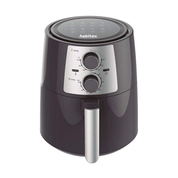 La freidora de aire HABITEX funciona mediante una tecnología ultra-rápida de circulación de aire caliente aportando unos resultados crujientes y deliciosos sin utilizar aceite. Además de freir, es ideal para asar y hornear alimentos por convección, como un horno. Trabaja a una potencia de 1250-1450 W. Dispone de un termostato regulable hasta 200ºC y temporizador de 60 minutos con apagado automático. Gran capacidad de 4,2 litros y la cesta de 3,5 litros. es antiadherente y libre de BPA, toxicidades. Con esta freidora obtendrás una serie de ventajas que te detallamos a continuación: economizarás el consumo de aceite, cocinarás los alimentos con menos grasas, evitarás el olor del aceite frito en tu hogar y podrás limpiarla con mayor facilidad.