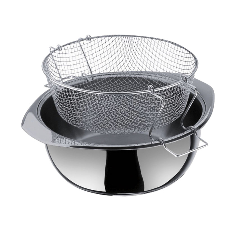 La freidora está fabricada en acero inoxidable 18/10 apta para el lavavajillas. Incluye un cestillo extraible con unas asas que se apoyan en el recipiente, ideales para escurrir bien el aceite. Viene presentada en caja.