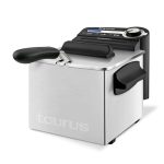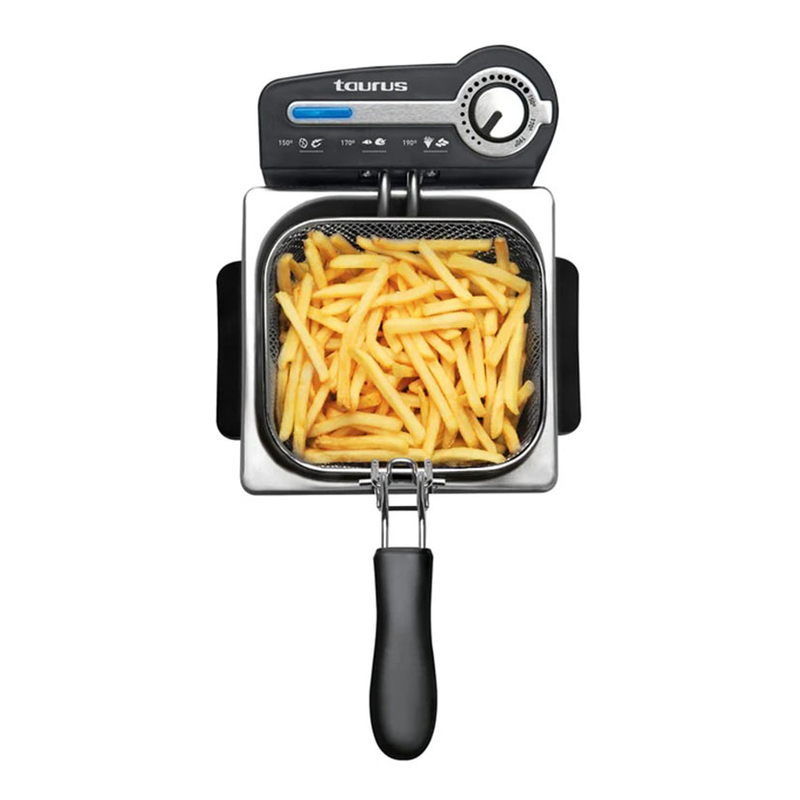 La freidora es ideal para freír pequeñas cantidades de alimentos. Su diseño compacto ocupará un espacio pequeño en tu cocina y podrás guardarla en cualquier rincón. Su cubeta es de acero inoxidable de 2 litros de capacidad, incluye un práctico sistema de filtrado del aceite con el que podrás eliminar las impurezas fácilmente, consiguiendo un aceite mucho más tiempo y evitando así la mezcla de sabores. Incorpora dos prácticas asas, un regulador de temperatura y un piloto luminoso que te indicará cuando el aceite esté listo. Tiene 3 años de garantía y se presenta en una caja.