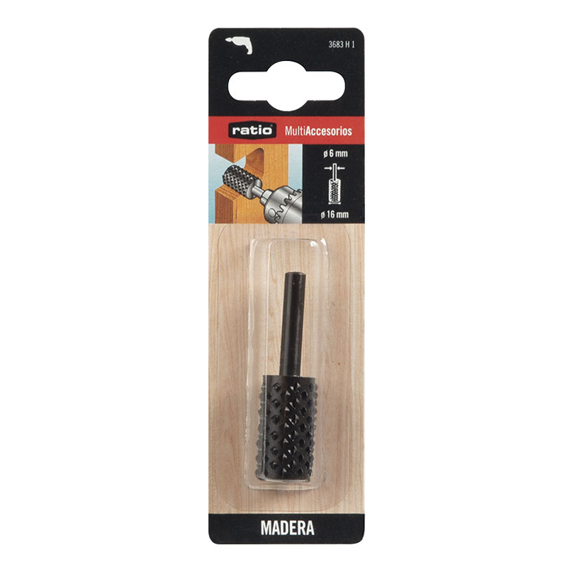 Esta fresa metálica de 16 mm de diámetro, con forma cilíndrica y vástago de 6 mm, resulta idónea para trabajos para perfilar y avellanar maderas y plásticos duros. Acoplable a taladros de 3000 rpm. Se presenta en un blíster.
