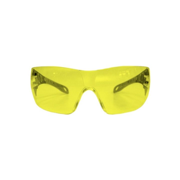Montura cómoda, ligera, ergonómica y extremadamente envolvente.. Patillas con plástico blando en las zonas de apoyo para mayor comodidad.. Patillas ranuradas para crear una pequeña refrigeración en trabajos con exposición a calor.. No contiene ninguna pieza metálica.. Certificado EN 166 (Europea básica) y EN 170 (Filtros UV).