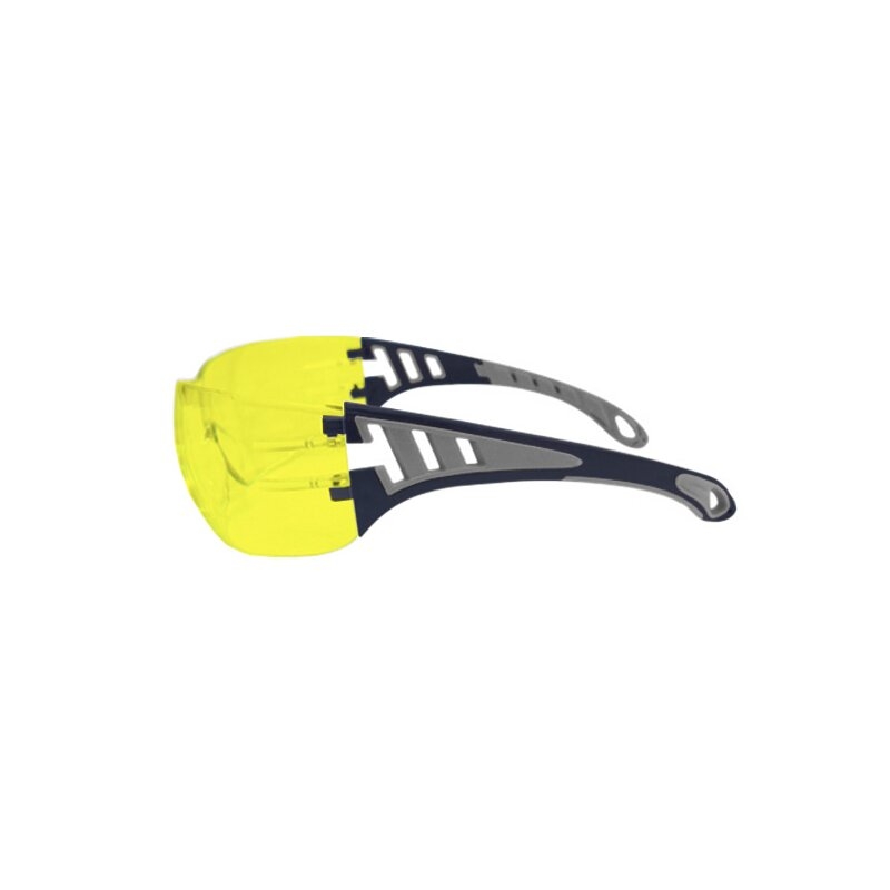 Gafas de seguridad con montura cómoda, ligera, ergonómica y extremadamente envolvente. Patillas de dos componentes con plástico blando en las zonas de apoyo/contacto para mayor comodidad. Patillas ranuradas para crear una pequeña refrigeración en ambientes y trabajos con exposición a fuentes de calor. No contiene ninguna pieza metálica.
