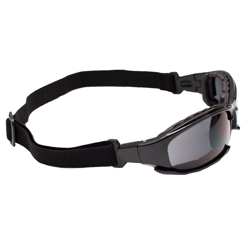 Montura: Cómoda, ergonómica y resistente. Gafas con patillas y cinta elástica intercambiables, equipadas con respiraderos de ventilación y espuma interna extraíble para un mejor ajuste a la cara.