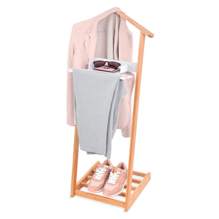 Este galán de noche JOBGAR está fabricado en madera de Bambú e incorpora una repisa para que puedas colocar los zapatos. Tiene unas medidas de 43,5 x34xh.102 cm