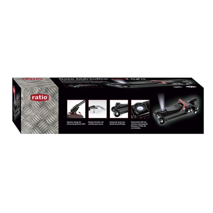 Magnífico gato hidráulico de carretilla de perfil bajo. Tiene las ruedas de acero, asa de transporte y mango elevador con extremo para vasos (incluye 2 vasos reversibles CHR-V para ruedas: 17/19-21/23 mm). El soporte del mango de elevación es giratorio a 360º. Dispone de iluminación LED con un sistema de autoapagado a los 2 minutos. Pilas no incluidas (3xAA). Peso máximo de 2000 kg y altura 80-365 mm. Se presenta en una caja.
