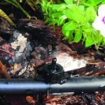 3C. … saque los ramales de microtubo de 4 mm. mediante las UNIONES. Coloque el GOTERO en el extremo final del microtubo. Las PIQUETAS nos van a permitir fijar y elevar el gotero sobre la tierra.