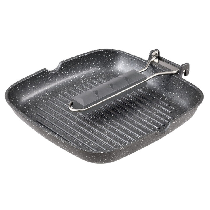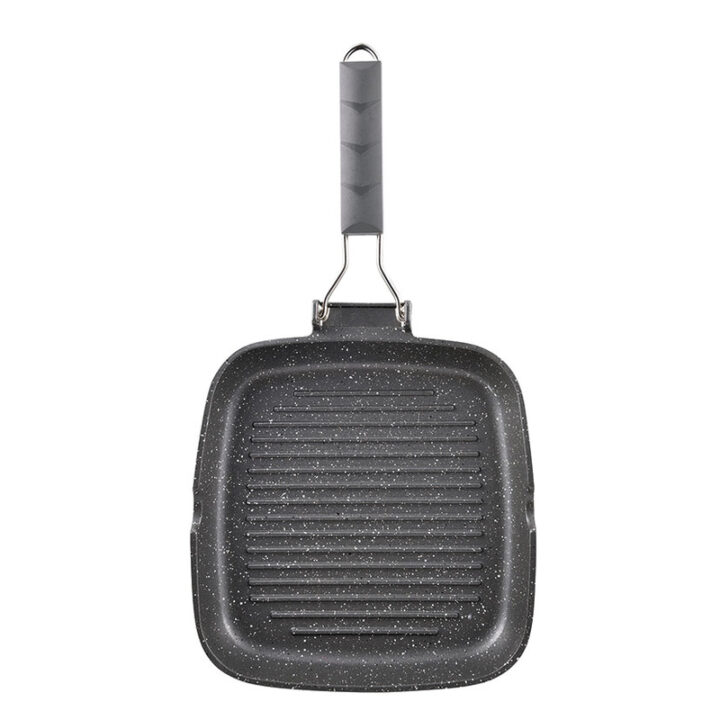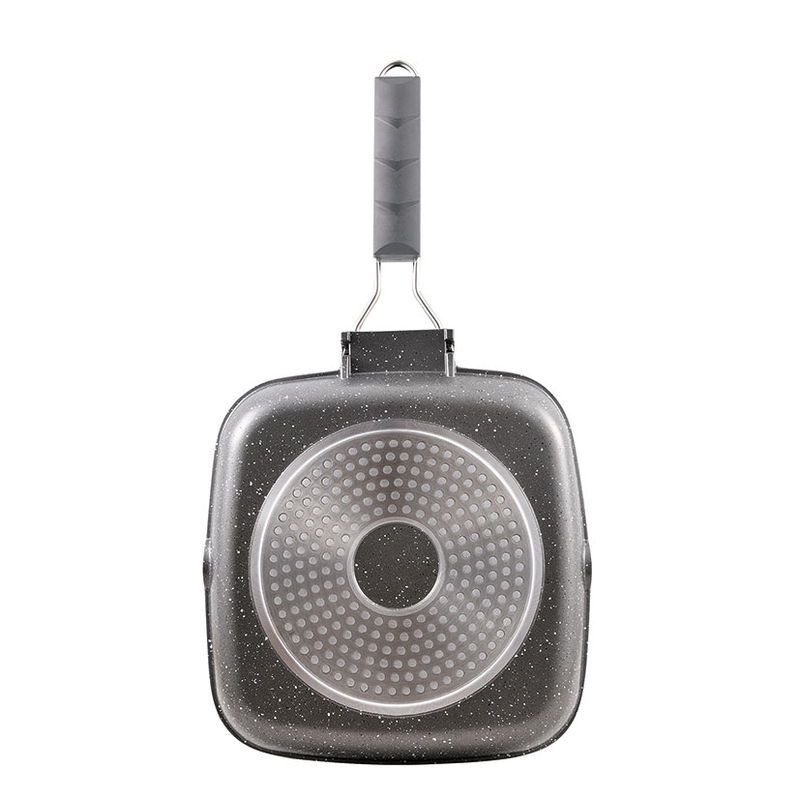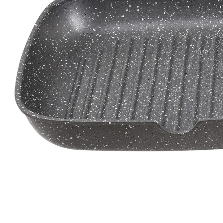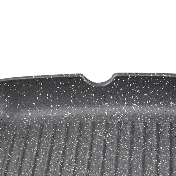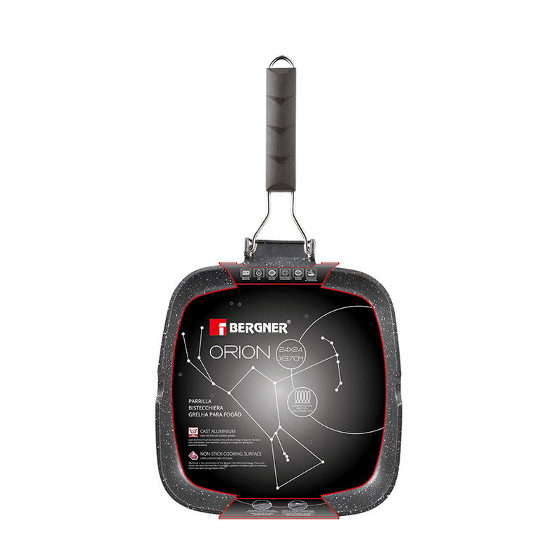 El grill BERGNER está fabricado en aluminio forjado con efecto piedra de gran ligerza y resistencia. El interior y exterior del wok tiene un recubrimiento antiadherente Marble que evitará que no se peguen los alimentos al cocinarlos. Dispone mango soft touch de tacto suave y permanecen frías mientras cocinas. Además en el lateral del grill tiene una hendidura para desechar la grasa sobrante. Es apto para todo tipo de cocinas. Es apto para todo tipo de fuegos incluido inducción. En nuestra web disponemos de más utensilios de cocina de la misma gama para que puedas combinarlos.