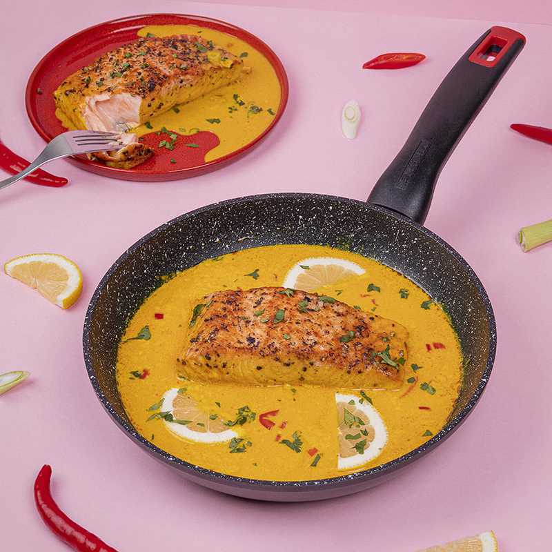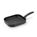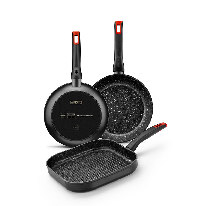 El grill MONIX modelo Titán Rock está fabricado en aluminio forjado 4 mm con efecto piedra y es apta para encimeras de inducción. La sartén tiene el interior con revestimiento antiadherente, triple capa Quantanium con partículas de Titanio, asegura gran resistencia además de una limpieza higiénica. Este práctico utensilio tiene el mango ergonómico de baquelita termorresistente con acabado Soft-Touch e «insert» en color rojo; además tiene un fondo difusor que distribuirá el calor de manera uniforme por toda la base. La grill MONIX es apto para todo tipo de cocinas. Apta para su limpieza en lavavajillas.
