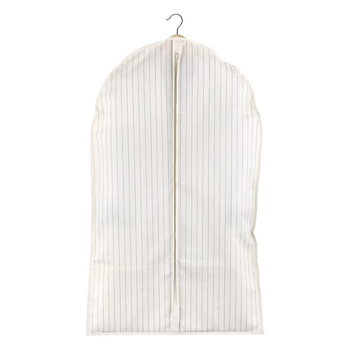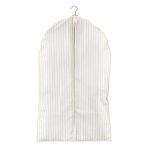 Un guardatraje sirve para almacenar y proteger trajes u otras prendas de vestir de manera ordenada y segura. Fabricadas en poliéster decorado con rayas, ofrece un diseño elegante y funcional. El material es lavable y transpirable, asegurando la durabilidad y la frescura de tus pertenencias. Sus dimensiones son: 60×100 cm.