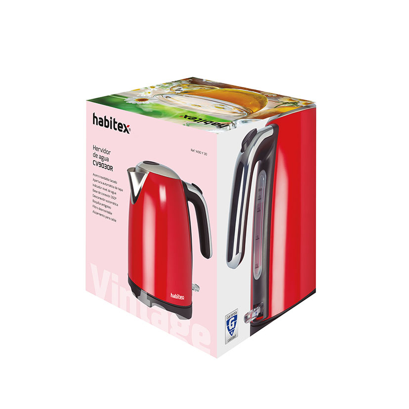 El hervidor HABITEX de esta serie se adapta perfectamente a ambientes clásicos y modernos dando un toque atemporal y refinado a tu cocina. Tiene una potencia de 1850-2200W y una capacidad de 1,7 Litros. Podrás ver en todo momento el nivel de agua, gracias a su visor del nivel transparente. Dispone de un sistema de apagado automático, una vez el agua llega al punto de ebullición se desconecta para una mayor seguridad; apertura automática de la tapa, boquilla antigoteo, filtro desmontable y alojamiento para el cable. La podrás combinar con diferentes pequeños electrodomésticos de esta misma línea dándole un toque Vintage a tu cocina Tiene 2 años de garantía y viene presentada en una caja. De esta misma línea dándole un toque Vintage a tu cocina Tiene 3 años de garantía y viene presentada en una caja.