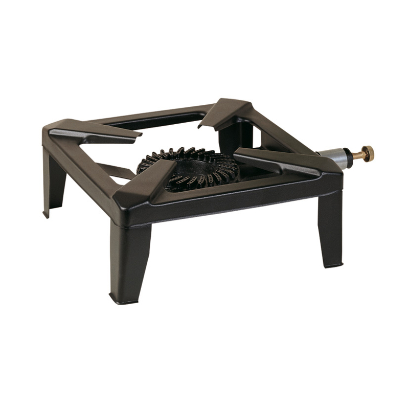 Este hornillo incorpora cuatro pies y un quemador. Se instala en el exterior y tiene unas dimensiones de 40x40xh.19 cm. Se presenta en una caja con 2 unidades.