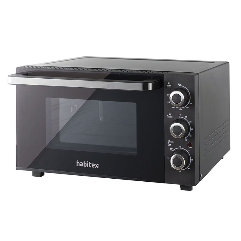 Este horno de sobremesa independiente, te permitirá cocinar todo tipo de recetas, gratinar, asar y tostar. Tiene unas medidas exteriores de 53,5x44xh.32 cm (ancho x alto x fondo) e interiores de 38x31xh.23 cm. Gracias a su temperatura ajustable 90-230ºC, temporizador de 15-90 minutos y la función de convección, te permitirá preparar tus deliciosas recetas en el punto perfecto de cocción, distribuyendo el calor de una forma uniforme por todo el horno. La puerta tiene un doble cristal para mantener mejor la temperatura interior. Además dispone de luz interior para evitar abrir la puerta en todo momento. Incorpora bandeja y rejilla extraíbles para una fácil limpieza; así como un gancho asador y un asa especial para poder extraerlo con seguridad. Tiene 3 años de garantía.