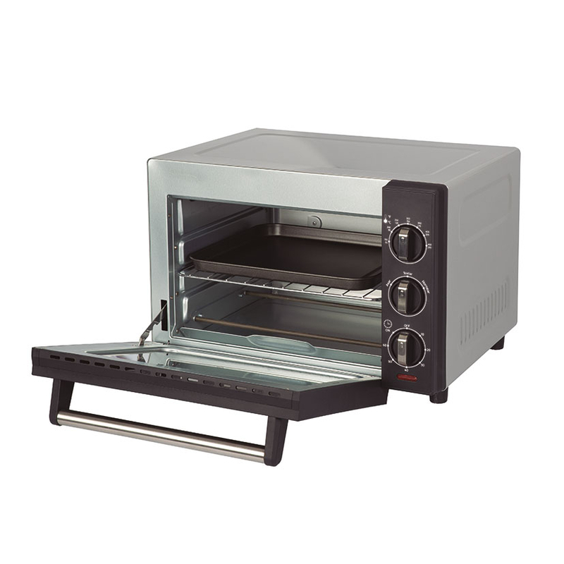 Este horno de sobremesa independiente, tiene las funciones de asar, tostar y hornear. Tiene unas medidas exteriores de 44x40xh.29 cm e interiores de 32,2×30,6xh.22,7 cm. Gracias a su temperatura ajustable 150-230ºC, temporizador de 10-60 minutos, podrás cocinar las recetas fácilmente mientras haces otras tareas. Incorpora bandeja y rejilla extraíbles para una fácil limpieza. Tiene 3 años de garantía.