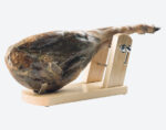 Jamonero Rioja Lacado Natural fabricado en ESPAÑA con madera de pino insigne chileno de primera calidad. Los herrajes y los pinchos son de acero con el acabado de la superficie en cromo brillo.