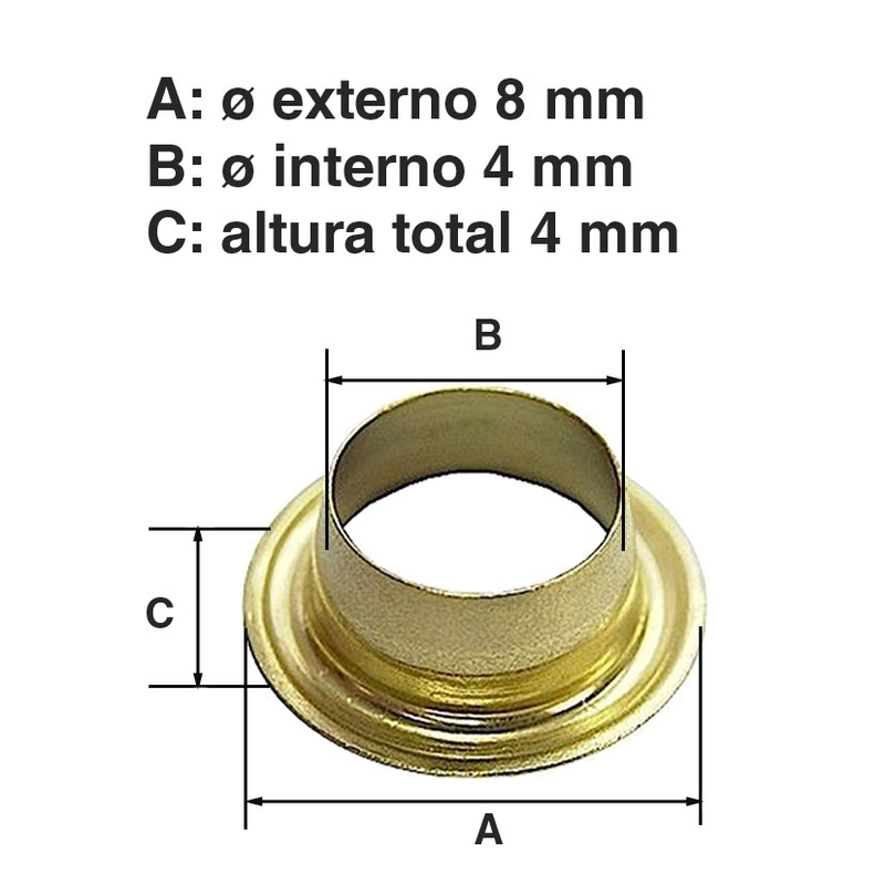 Recambio de 100 ojetes surtidos para el alicate ojetero. Se presenta en una bolsa.