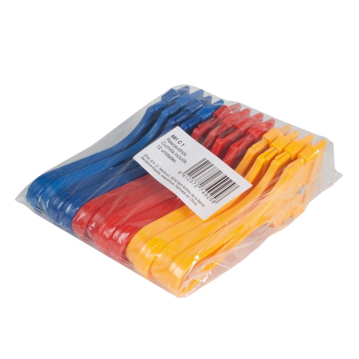Este rascavidrios cuenta con cuerpo de plástico y una cuchilla plana afilada, incluida, para un trabajo eficaz. Se presenta en bolsa de 12 unidades de colores surtidos.