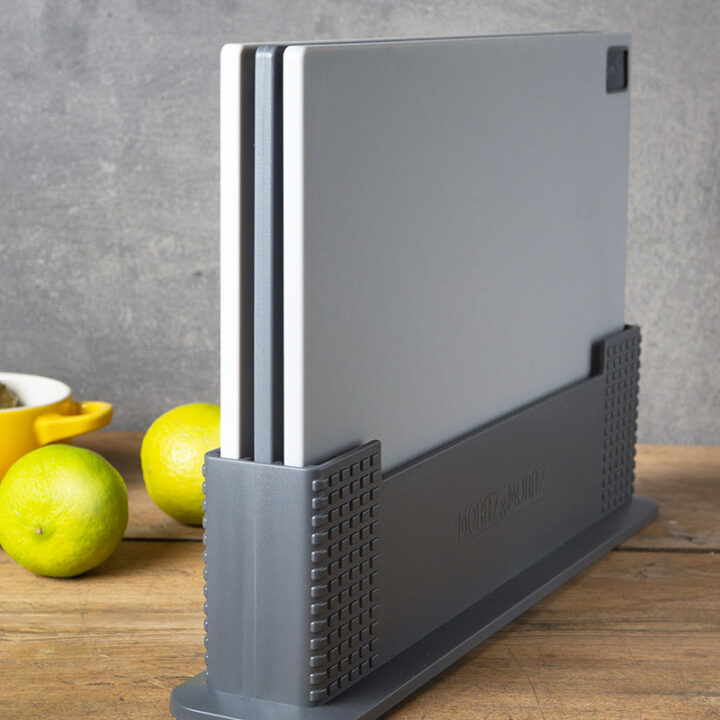 Este juego de 4 tablas está fabricado en plástico de alta calidad libre de BPA en color gris antracita y negro. Es antideslizante por ambos lados para una mayor seguridad de corte. Dispone de tacos antideslizantes para una mayor seguridad al corte. Las tablas son aptas para el lavavajillas.