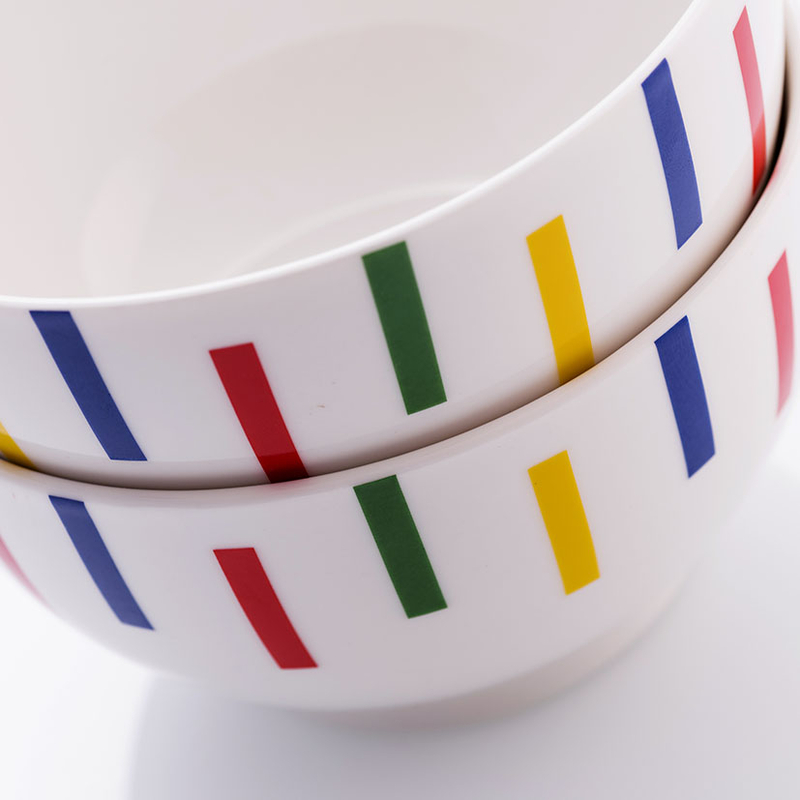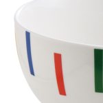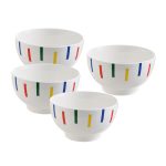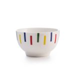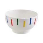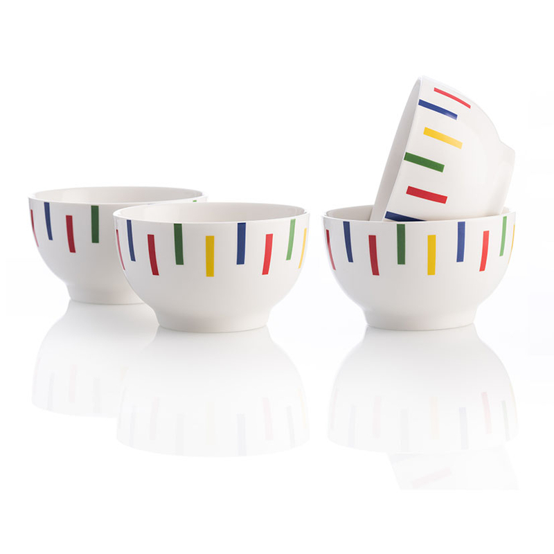 Este bol está fabricado en porcelana de alta calidad y fácil limpieza. Es resistente y tiene un diseño ligero con acabados en rayas de colores, que aportan frescura y colorido a tu mesa. El bol lo puedes apilar ahorrando espacio en los armarios. Es apto para el lavavajillas. Este bol se sirve en una caja con 4 unidades. Además, puedes combinarlo con más productos de la misma gama BENETTON.