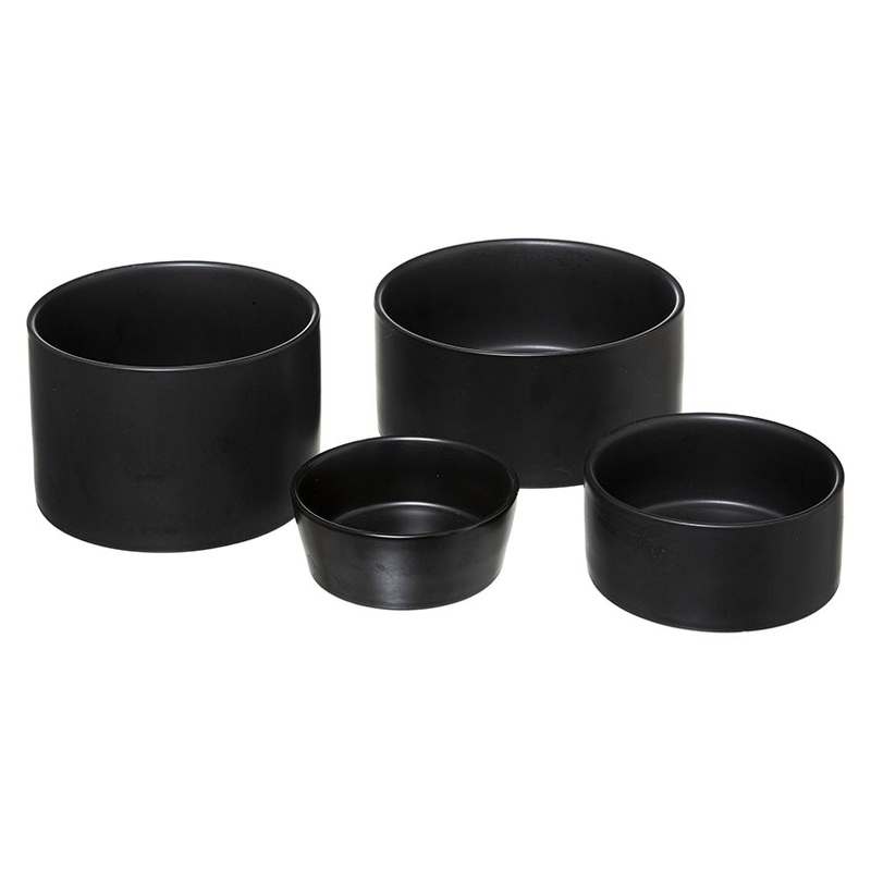 Este juego es perfecto para completar tu menaje lo podrás utilizar en todas las ocasiones por su calidad y elegancia. Está fabricado en gres en color negro y tiene una base en bambú con unas medidas de ø33xh.10 cm. Está compuesto por 4 cuencos con las siguientes medidas: