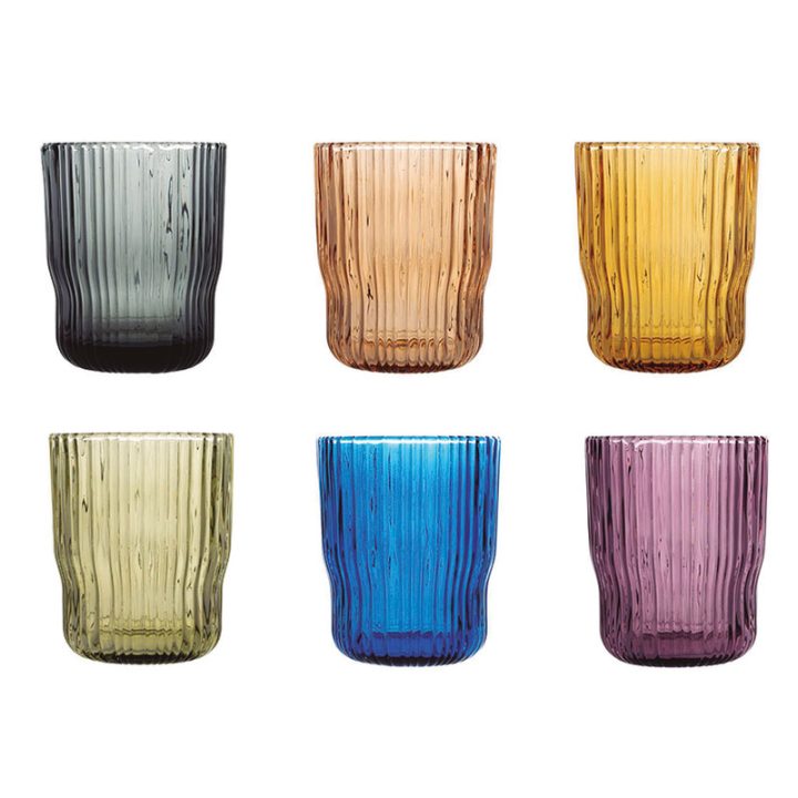 Estos vasos están elaborados en vidrio en diferentes colores. Son aptos para el lavavajillas. Cada vaso tiene una capacidad de 28 cl. Se presenta en una caja de 6 unidades en color surtidas. En nuestra web disponemos de más copas de la misma serie para que las puedas combinar.
