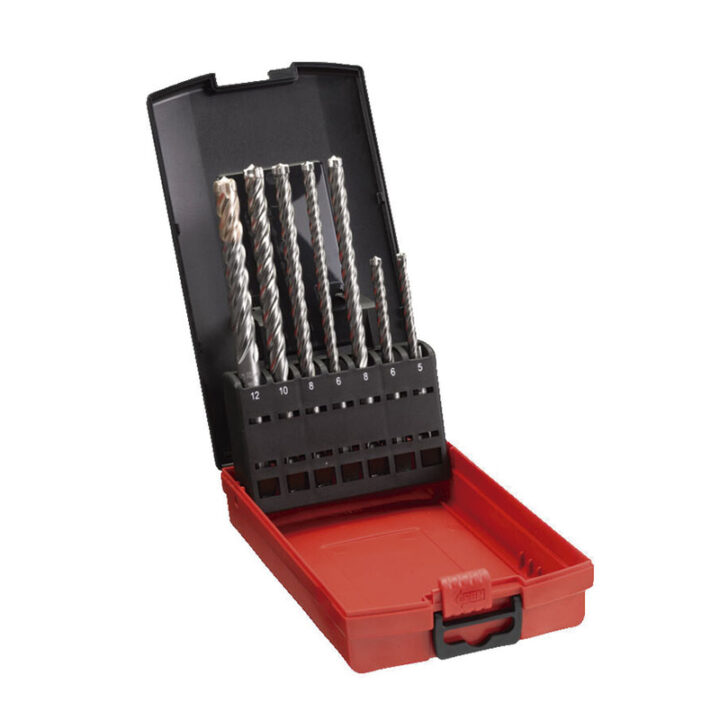 Juego de 7 brocas de 4 cortes que perfora el material de forma eficiente está fabricada en carburo wolframio macizo soldada. Cuenta con 4 filos de corte simétricos a 90º, garantizando un agujero circular para una sujeción óptima del anclaje. La punta en ángulo más afilada garantiza una mayor precisión y rendimiento en los materiales. Gracias a su nuevo diseño en espiral ofrece una mayor velocidad y fricción en materiales como el hormigón.