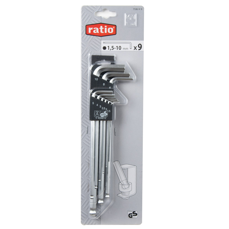 En tu caja de herramientas nunca deberían faltar las llaves Allen, fundamentalmente por sus infinitas aplicaciones. Este juego de RATIO está integrado por 9 llaves con punta de bola, de diferentes medidas (1,5-2-2,5-3-4-5-6-8-10 mm), fabricadas en cromo-vanadio, por lo que ofrecen una gran duración. Se presentan en un práctico soporte para que siempre tengas tus llaves juntas y bien organizadas.