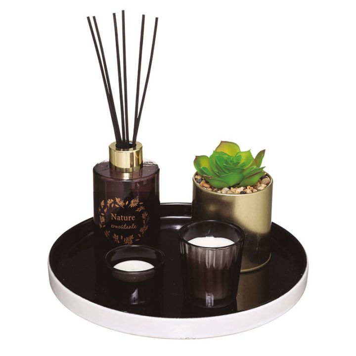 Juego aromas con bandeja regalo y planta artificial