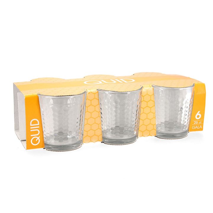 Este juego de 6 vasos está elaborado en cristal con un diseño contemporáneo. Tiene una capacidad de 26 cl cada uno, además, es apto para el lavavajillas. Viene presentado en una caja con 8 unidades.