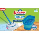 El Spontex Twist Mop Ultra Compact Kit es un conjunto de limpieza todo en uno que incluye una fregona de microfibra con sistema de autoescurrido y un cubo plegable de 10 litros. Su diseño compacto permite un almacenamiento fácil y eficiente, ocupando poco espacio cuando no está en uso. La fregona cuenta con un cabezal de microfibra que elimina hasta el 99% de las bacterias solo con agua, y su sistema de escurrido integrado permite mantener las manos secas durante la limpieza. El mango telescópico de cinco piezas (140 cm) se ajusta a diferentes alturas y se desmonta fácilmente para guardarlo dentro del cubo.