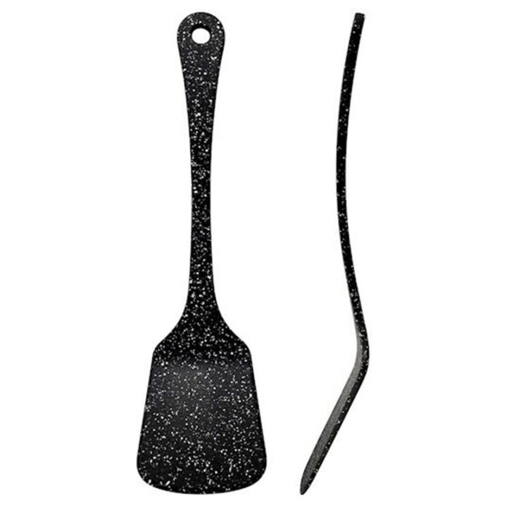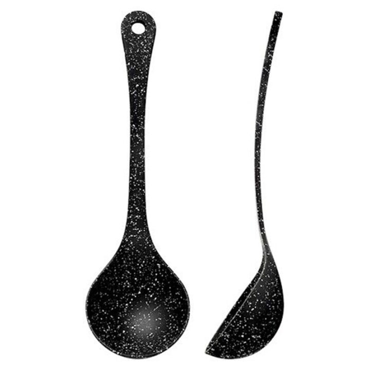 El kit de accesorios está fabricado en nilón antiadherente con acabado en granito. Incluye: soporte sobremesa giratorio un cazo, una cuchara, espumadera, paleta lisa y paleta ranurada.