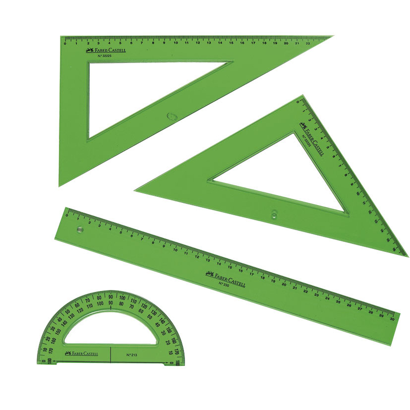 Este juego está compuesto por una escuadra, un cartabón, una regla y un semicírculo. Incluye una funda para poder guardarlo