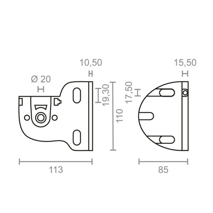 Este juego de soportes derecho/izquierda tiene unas medidas de 113x85x110 mm y está fabricado en aluminio de color blanco. El juego se presenta en una bolsa. Puedes consultar el croquis que tenemos colgado en la web.