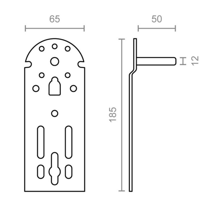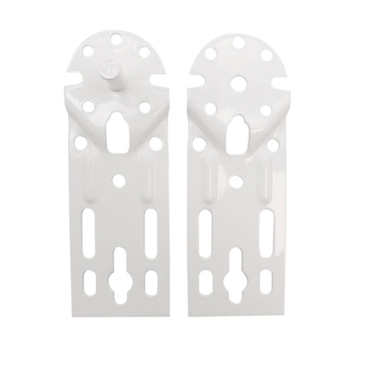 Este juego de soportes tiene unas medidas de 65x50x185 mm y está fabricado en acero de color blanco. El juego se presenta en una bolsa. Puedes consultar el croquis que tenemos colgado en la web.