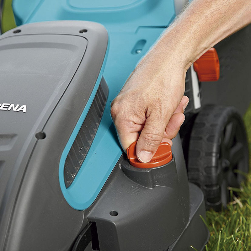 El cortacésped Power Max tiene una potencia de 1200 W y un ancho de corte de 32 m. El volumen de la bolsa es de 30 L y su capacidad de trabajo es de 300 m2. Pesa 8,3 kilos.
