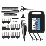 Este cortapelos funciona con cable y está equipado con unas cuchillas autoafilables de 46 milímetros de ancho que están fabricadas en carbono. El cortapelos dispone de 10 guías de corte intercambiables. Este Kit cotapelos WHAL incluye como accesorios 3 peines, tijeras, aceite lubricante, cepillo de limpieza y un estuche para guardar. Tiene 3 años de garantía y se presenta en una caja.