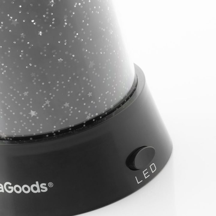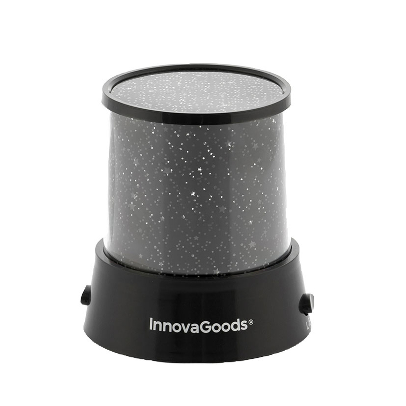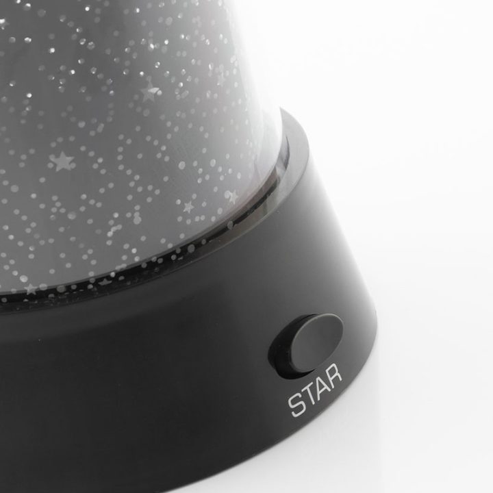Esta original lámpara proyecta de una forma envolvente estrellas en el techo y paredes. Está fabricada en plástico ABS, es ideal para que los más pequeños disfruten cada noche de un bonito cielo estrellado y así dormir cómodamente. Su diseño es ligero y dispone de botón Led: 3 Led con luz intermitente azul, verde y roja, botón Star: 1 Led con luz fija, ambos botones y funciones pueden activarse a la vez o de forma independiente. Funciona con 3 pilas AA que no están incluidas, o adaptador de corriente 4,5V (no incluido). Puedes complementar la información con el video del proveedor que tenemos colgado en nuestra web.