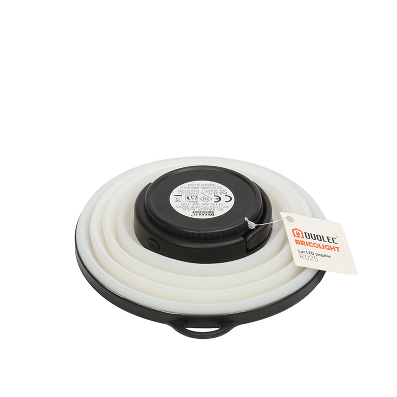 La lámpara plegable DUOLEC Bricolight R025 es una solución versátil y compacta para iluminación en cualquier espacio. Su diseño plegable en ABS y TPE la hace resistente y fácil de transportar. Es perfecta para múltiples aplicaciones. Puedes elegir una de los 3 modos de intensidad que tiene 100%-75%-50%. Funciona con 3 pilas AAA de 1.5V (no incluidas). Se sirve en un expositor de 6 unidades.