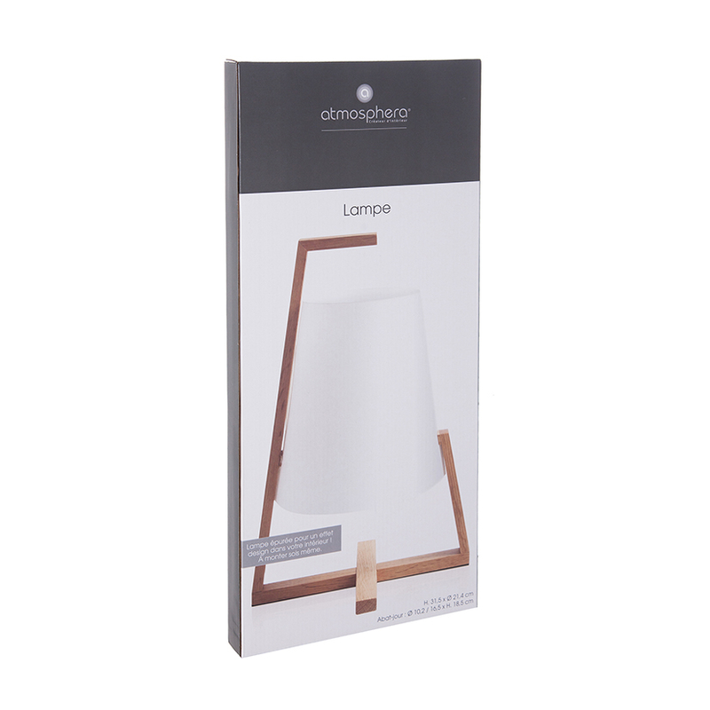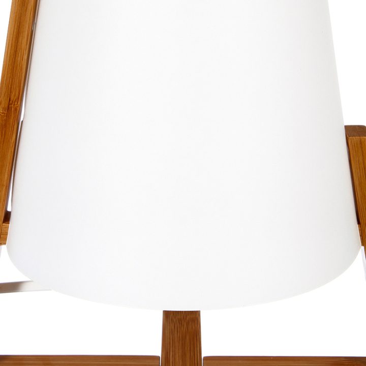 Esta lámpara de sobremesa tiene una estructura en bambú, destaca por su diseño minimalista combinada con la pantalla de color blanco. Es perfecta para dormitorios, dispone de una boquilla tipo E14, no incluye la bombilla y soporta una potencia máxima de 40W. Viene presentada en una caja