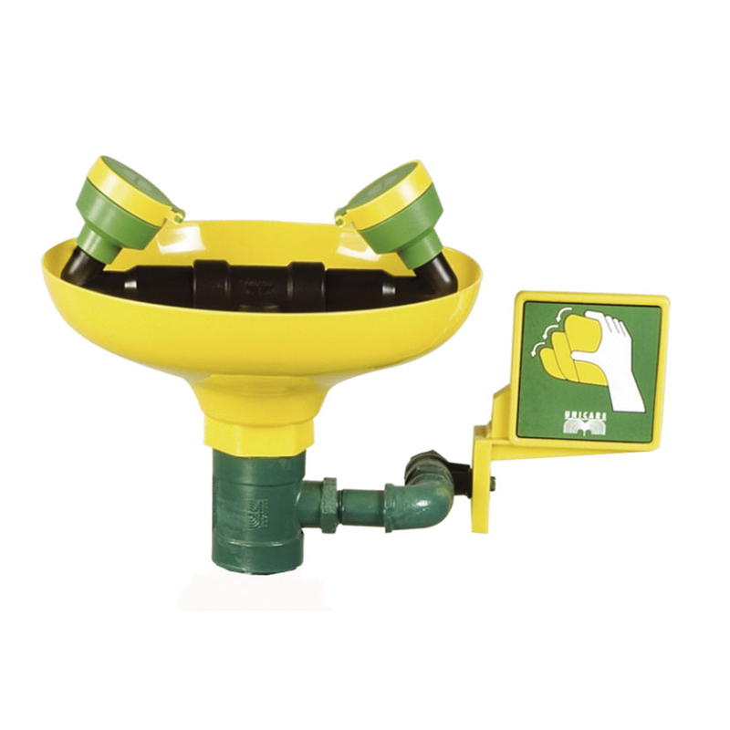 Este lavaojos incorpora un conpensador automático de flujo de agua, asegurando un flujo constante, aun cuando se producen variaciones de presión en la red. Debe instalarse en la proximidad del área del trabajo en un radio de 7-8 metros. La poza está fabricada en ABS resistente a la corrosión y es de color amarillo de alta visibilidad. Dispone de unas tapas que evitan que se contamine la salida de agua, una válvula de fácil apertura que deja el flujo de agua permanentemente abierto y unas almohadillas atomizadoras que proporcionan un flujo de agua suave y aireado en la área ocular dañada. Cumplen con la normativa EN 15154, ANSI-Z 358.1. Viene presentado en una caja.