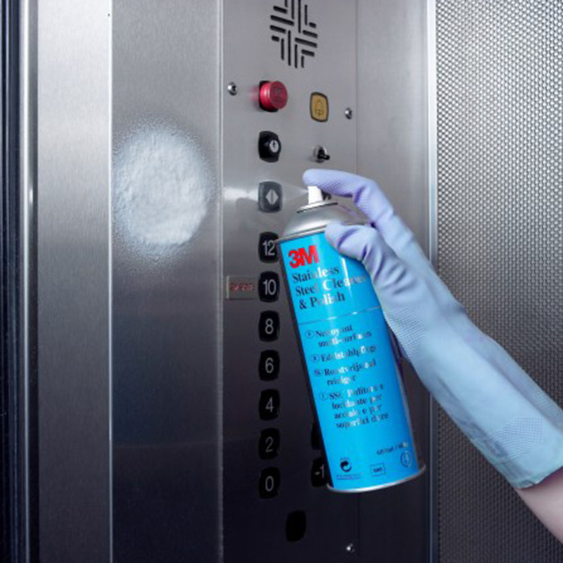El limpiador de acero inoxidable 3M no contiene productos químicos perjudiciales y se puede usar con seguridad en las zonas de preparación de alimentos. Se presenta en un bote aerosol de 600 ml.