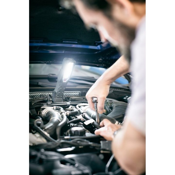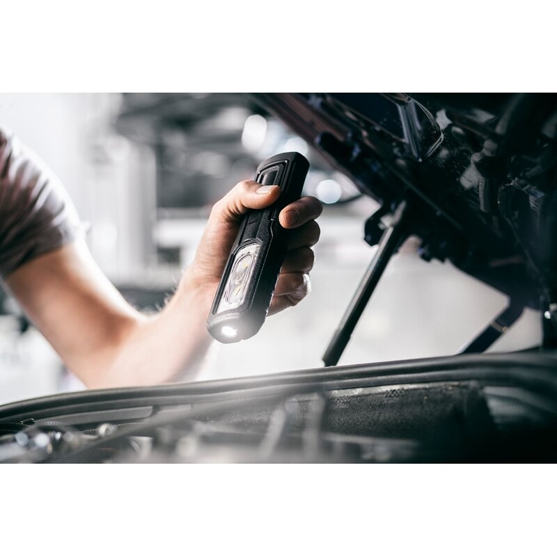 Lámpara de mano LED a batería HL 700 A. 12 LEDs SMD de gran luminosidad en la parte frontal. Etapa de conmutación adicional para 1 LED SMD en la cabeza de iluminación. Función de atenuación gradual de 10 % a 100 % para garantizarun tiempo de iluminación especialmente largo. Asa recubierta de goma para ofrecer un excelente agarre.